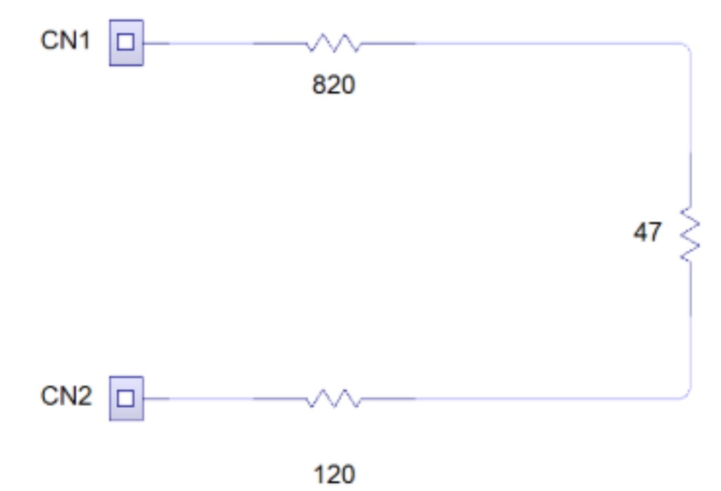 Rt= R1+R2+R3 = 820 + 47 + 120 = 987 ohms