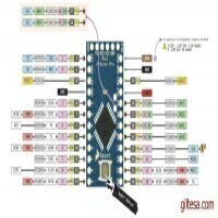 The Arduino Pro Mini is a microcontroller board based on the ATmega168 . It has 14 digital input/output pins (of which 6 can be used as PWM ), 8 analog inputs, an on-board resonator, a reset button, and holes for mounting pin headers. A six pin header can be connected to an FTDI cable or Sparkfun breakout board to provide USB power and communication to the board. The Arduino Pro Mini is intended for semi-permanent installation in objects or exhibitions. The board comes without pre-mounted headers, allowing the use of various types of connectors or direct soldering of wires. The pin layout is compatible with the Arduino Mini.
