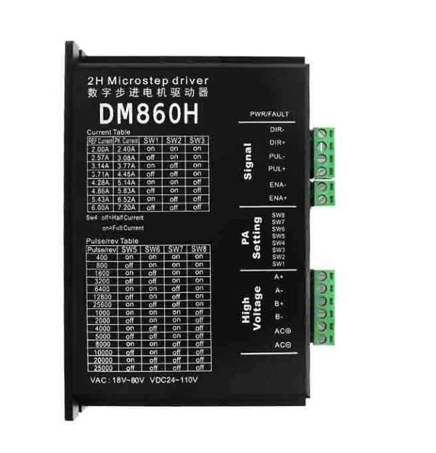 DM860H es un controlador de motores paso a paso de alta tensión, que funciona a través de tecnología DSP lo cual lo convierte en una solución rápida y versátil para el manejo de motores paso a paso, este controlador trae integrada tecnología anti-resonancia y control de corriente hasta 7.2 A, durante su funcionamiento la operación es suave precisa.
