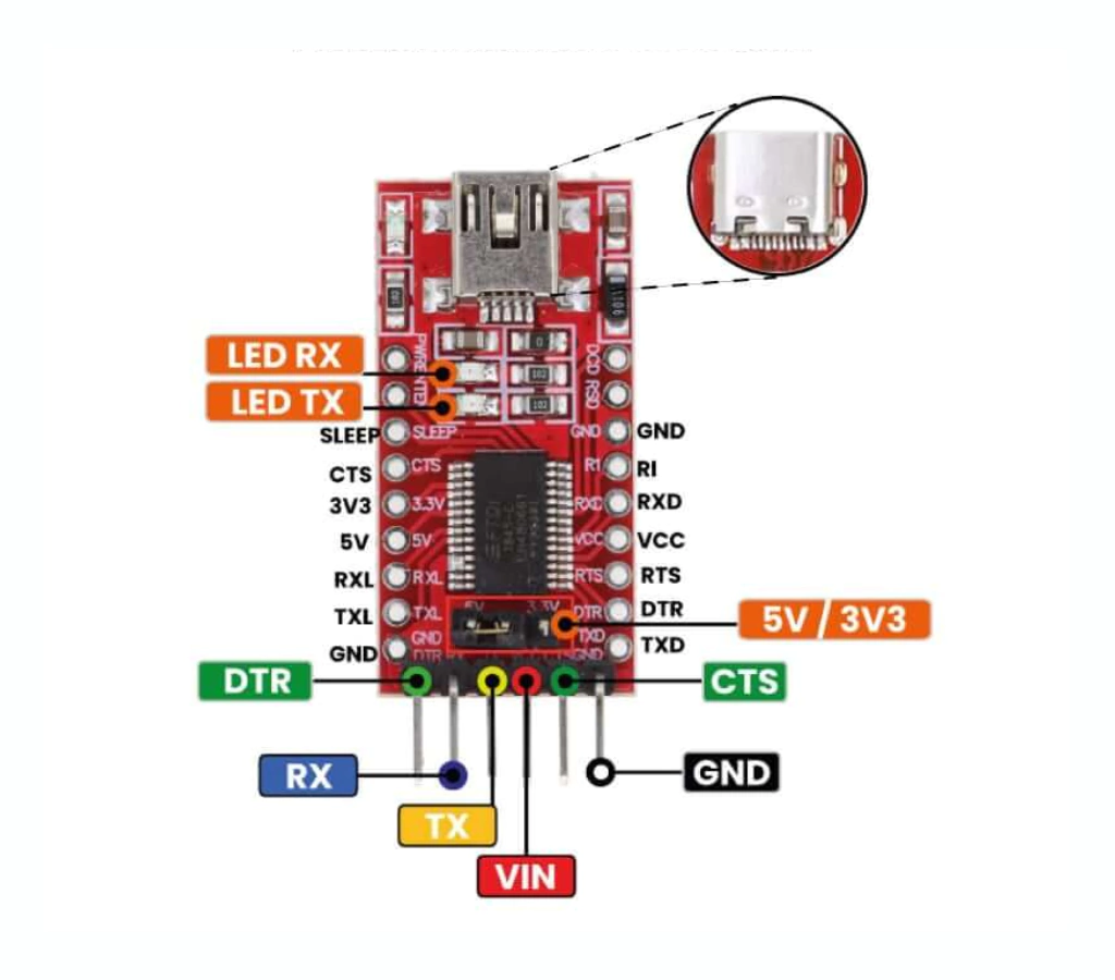 El FT232 FTDI es un módulo convertidor de USB a TTL diseñado para convertir señales entre un puerto USB de una computadora y niveles de voltaje TTL (Transistor-Transistor Logic). Estos convertidores son ideales para establecer comunicación con dispositivos embebidos, microcontroladores o módulos electrónicos que utilicen UART como protocolo de transmisión.